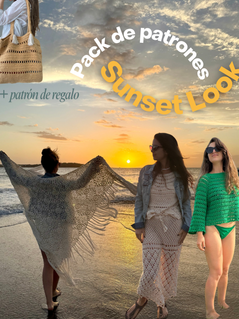 PACK PATRONES SUNSET LOOK – EDICION VERANO N1: SET OLIBERTA + CHAL JAZMIN + BUZO DE VERANO || y de regalo: la guia para tejer el BOLSO URBAN!