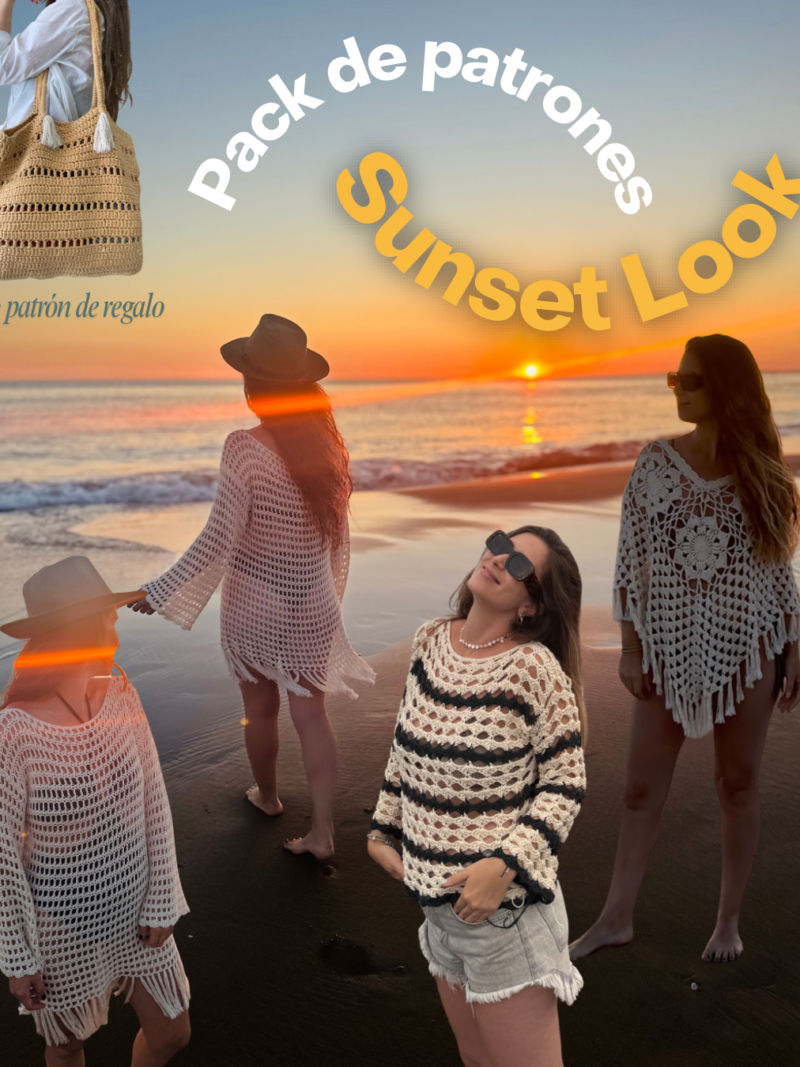 PACK DE PATRONES SUNSET LOOK - EDICION VERANO N2: Vestido Kilig + Poncho Gardenia + Sweater Vitamina || y de regalo: la guia para tejer el BOLSO URBAN!
